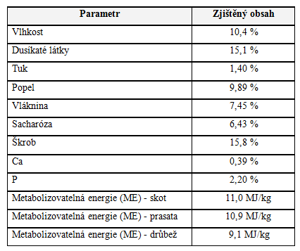 Metabolizovatelná energie (ME) - prasata 10,9 MJ/kg